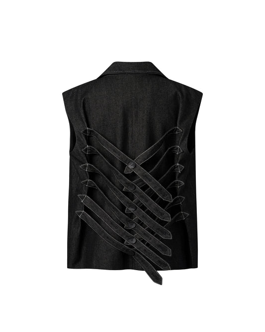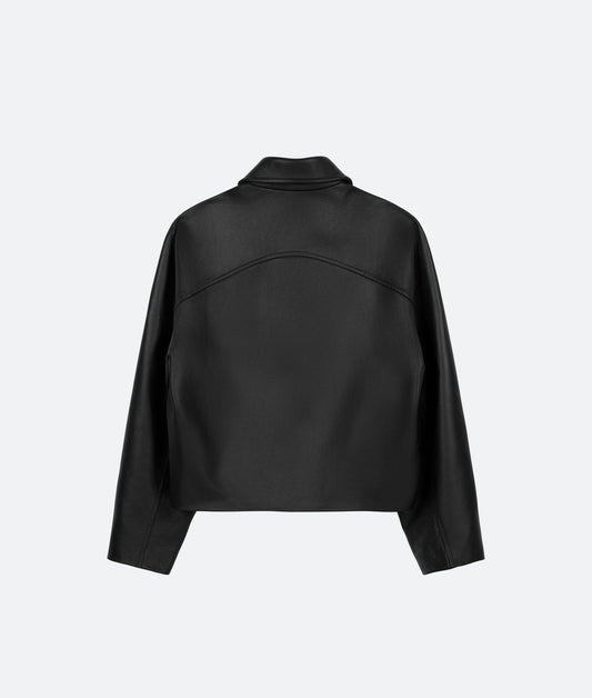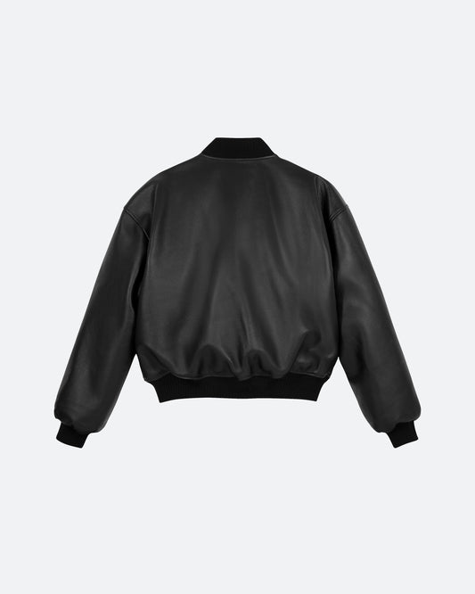 FRAGILE® Black Cropped Leather Bomber Jacket