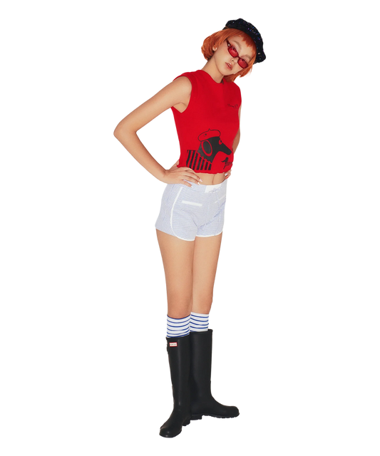 - Features a playful dachshund graphic print embellished with matching rhinestones.