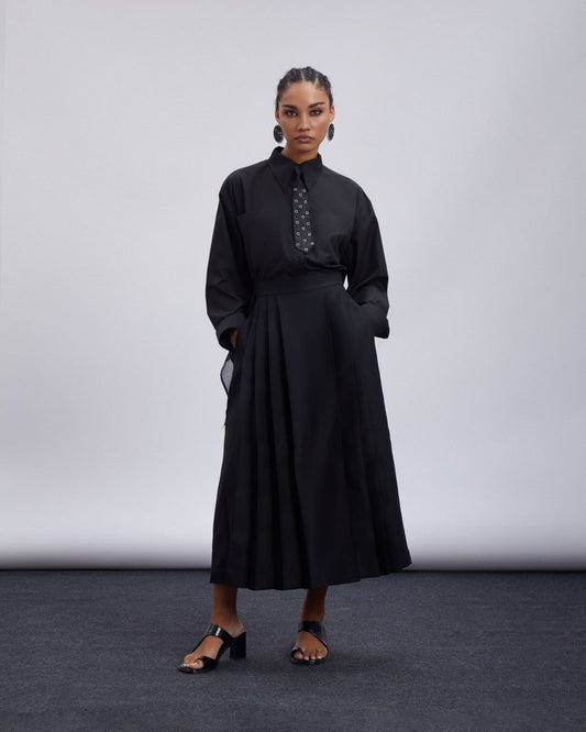 Black Pleated Midi Skirt