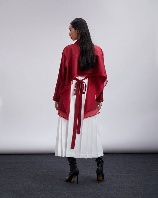 White Pleated Midi Skirt
